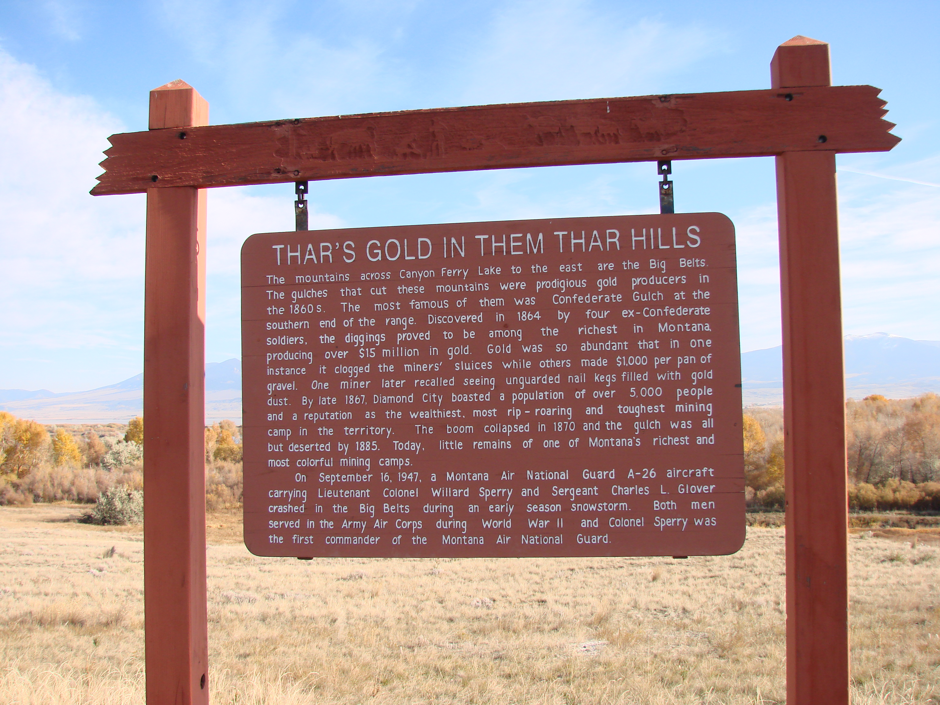 This mountain means home to me, as I’m sure it does to many other Towsendites. It is always beautiful, whether covered in snow or “bald”. It is not the most majestic of mountains, but it has always seemed so to me. The beautiful valley where I was raised has seen some changes, but still retains its charm. The signpost below gives a little of the history of the valley. I was raised without really understanding my roots, but in adulthood have done a little genealogical research and have learned that so many of the family names I grew up with were the very people whose grandparents and great grandparents had settled the valley in the 1860s, my great great grandparents among them. It must have been a very hard life, as Montana is still a challenge: winter is long and cold, summer is short and spring – well, it sometimes happens and sometimes doesn’t. Fall is gorgeous when we have “Indian summer”, but when winter comes and the trees lose their leaves the landscape can be bleak.